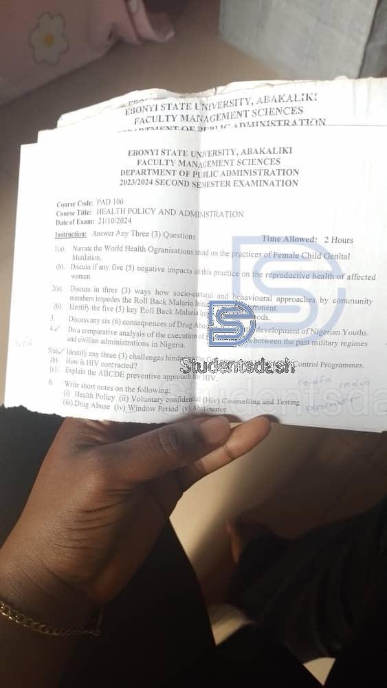 PAD 106 Past Questions and Answers