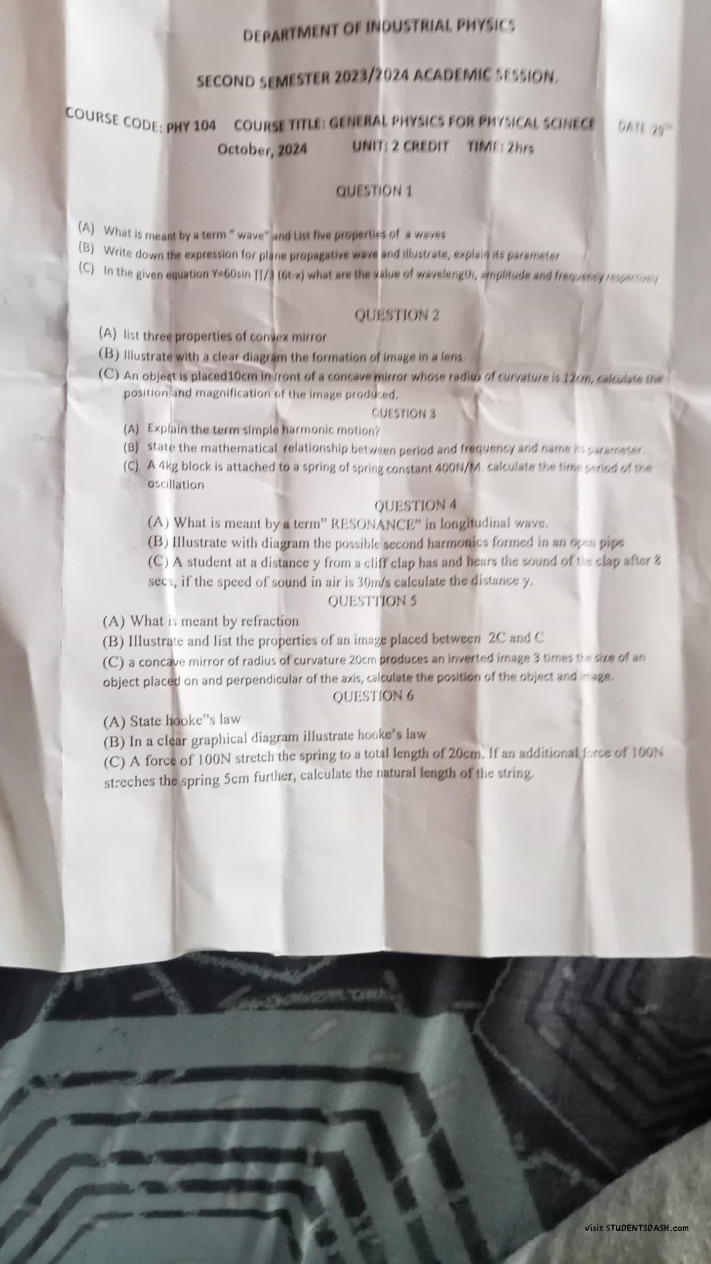 Home/Past Questions/PHY 104 Past Questions and Answers Past Questions PHY 104 Past Questions and Answers studentsdashNovember 12, 20240 Less than a minute Facebook X WhatsApp Telegram Join @Studentsdash on TG Copy URL URL Copied studentsdashNovember 12, 20240 Less than a minute Facebook X WhatsApp Telegram Share Facebook X WhatsApp Telegram Share via Email Print