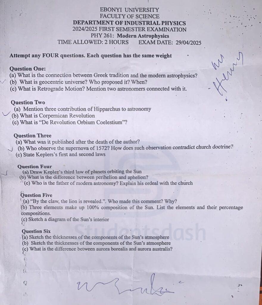 PHY 261 - Modern Astrophysics - Past Questions and Answers