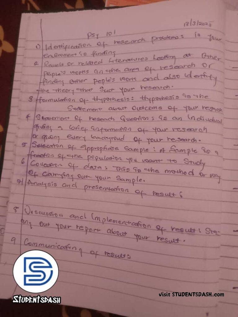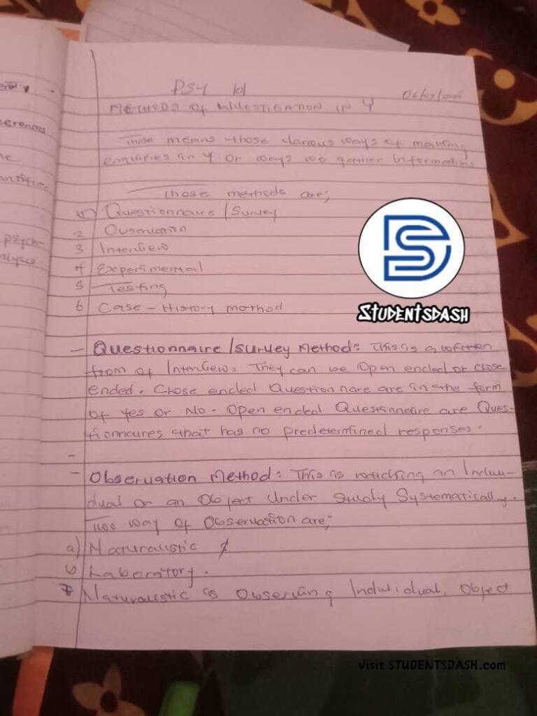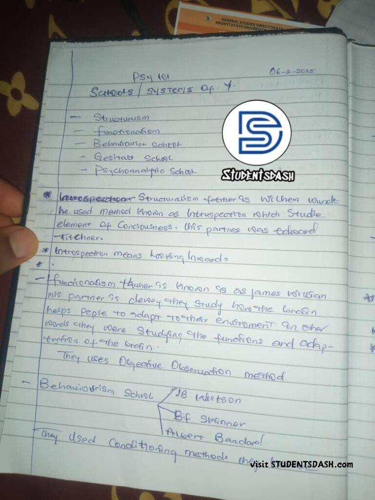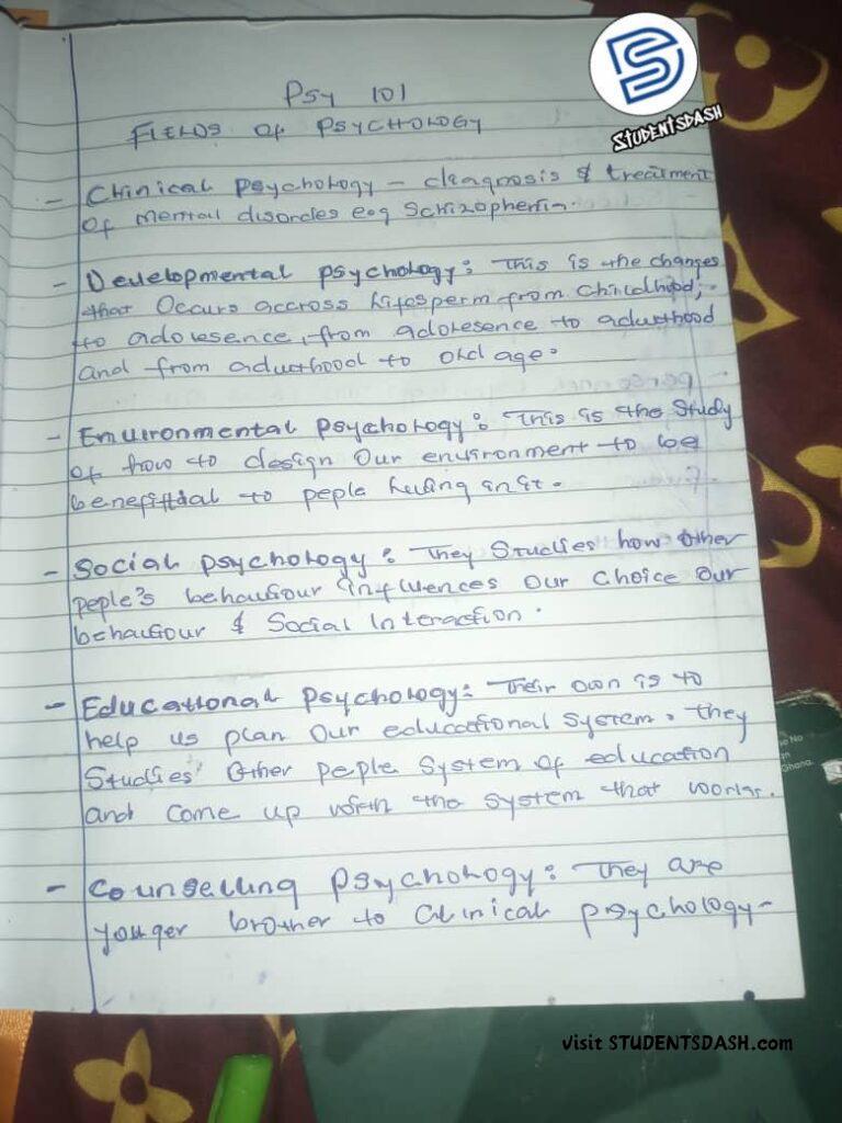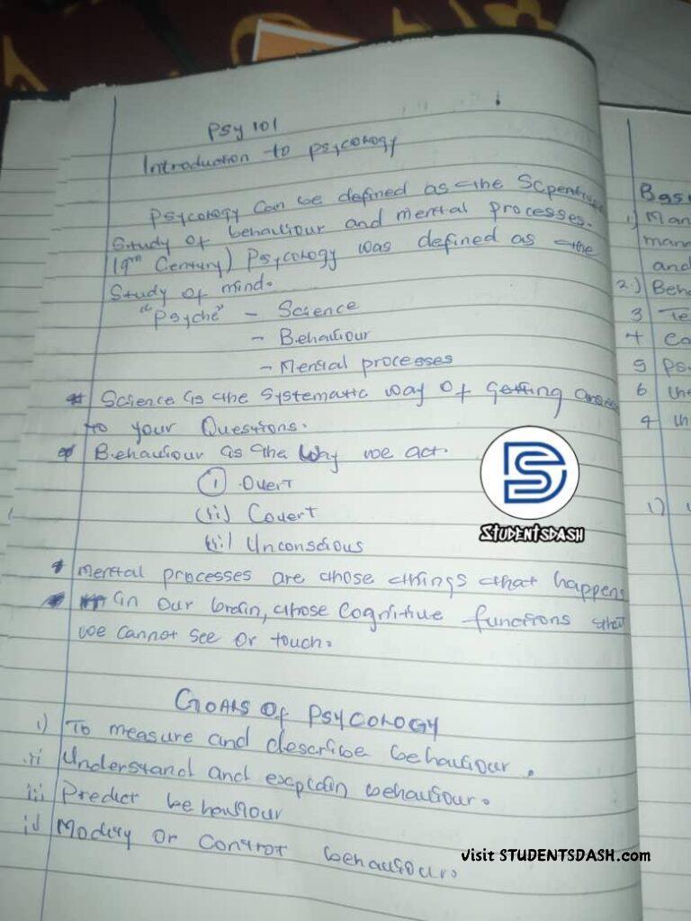 PSY 101 FULL CLASS NOTE – Introduction to Psychology